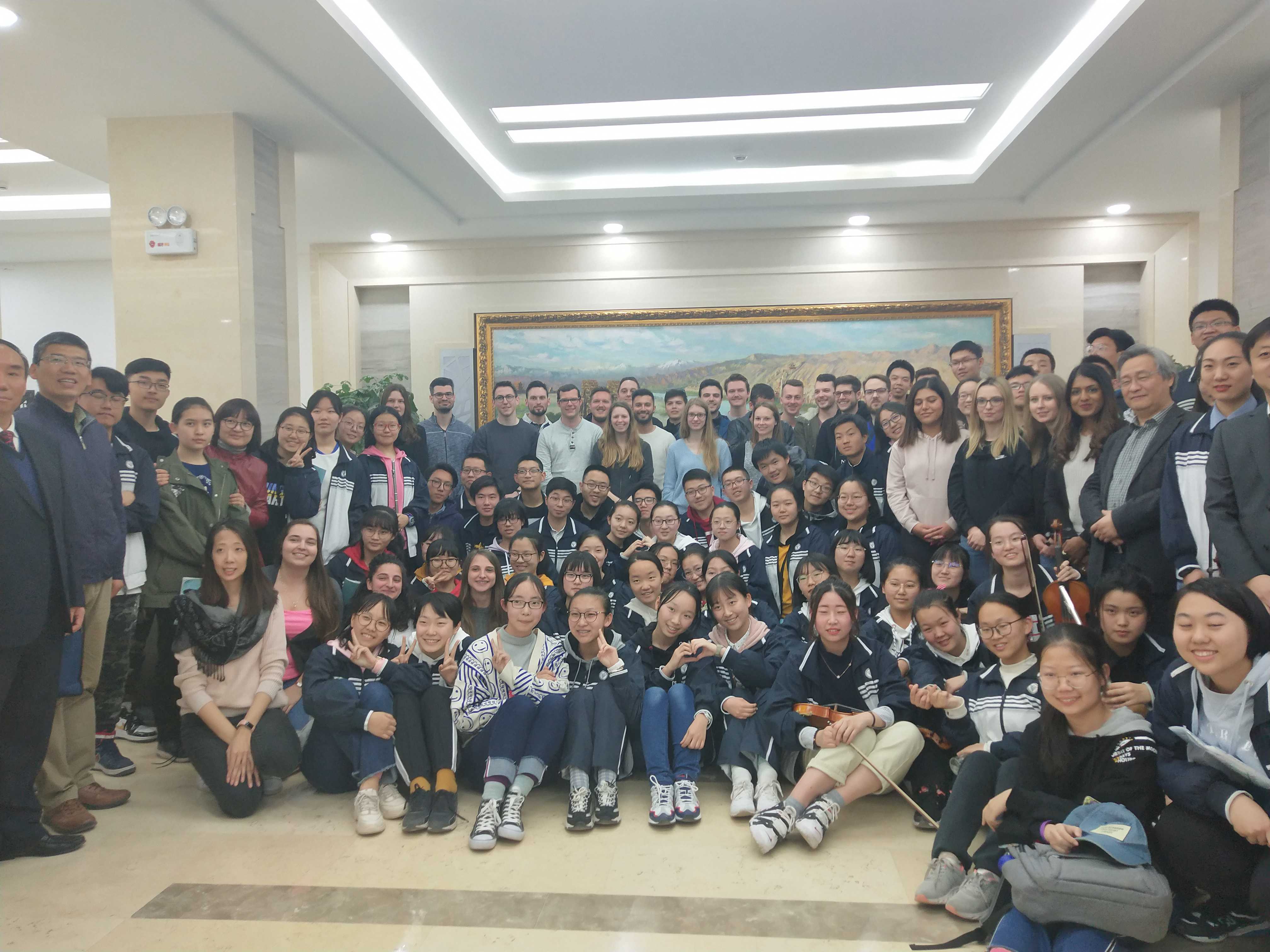 代表團(tuán)考察了我省經(jīng)濟(jì)教育和文教發(fā)展,期間參觀西北師大附中,并與在校學(xué)生展開音樂、藝術(shù)等方面的友好交流。