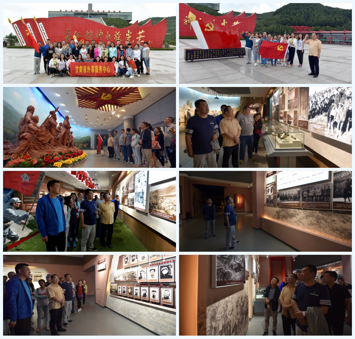甘肅省外事服務中心舉辦,紅色印記--重走長征路,愛國主義教育活動。大家來到六盤山革命根據地,重溫入黨誓詞,瞻仰革命先輩的豐功偉績,學習長征精神,并表示努力做到四個意識,積極工作,不辜負革命烈士們?yōu)橹畩^斗的目標。