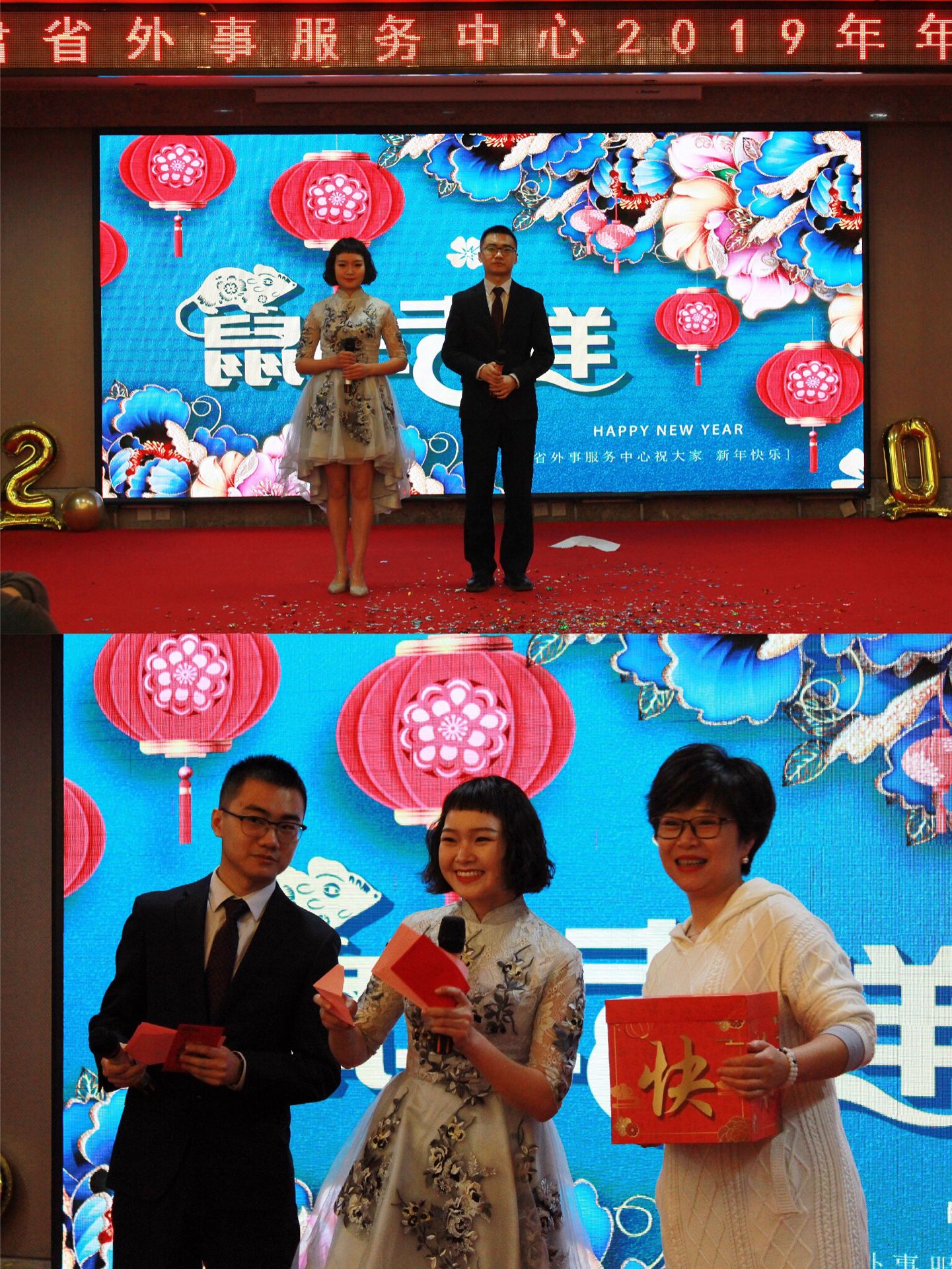 甘肅省外事服務(wù)中心舉行2020年迎新春年會。整場年會氣氛熱烈歡騰,節(jié)目精彩紛呈。演出節(jié)目逐一上場,臺上臺下成了歡樂的海洋。整臺年會氣氛熱烈歡騰,掌聲、叫好聲、歡笑聲不絕于耳。年會節(jié)目豐富多彩,有弘揚(yáng)企業(yè)文化的快板、有令人捧腹的小品,更有體現(xiàn)公司員工堅(jiān)強(qiáng)意志、拼搏精神的表演,讓所有觀眾過足了癮,也將年會的氣氛推向了高潮。整臺年會氣氛熱烈、高潮迭起。佳作紛呈的表演不但彰顯了員工們的個(gè)人才藝,更體現(xiàn)了企業(yè)的團(tuán)隊(duì)凝聚力和同事之間良好的合作精神,增進(jìn)了企業(yè)文化建設(shè)。最后外辦領(lǐng)導(dǎo)和中心領(lǐng)導(dǎo)做了講話對中心一年來所取得的成績給予肯定,并向每位職工及家人提前拜年。慷慨激昂的致辭給大家增添了無窮的信心。只爭朝夕加油干、不負(fù)韶華再出發(fā)。祝福外事服務(wù)中心在新的一年里各項(xiàng)工作更上一層樓